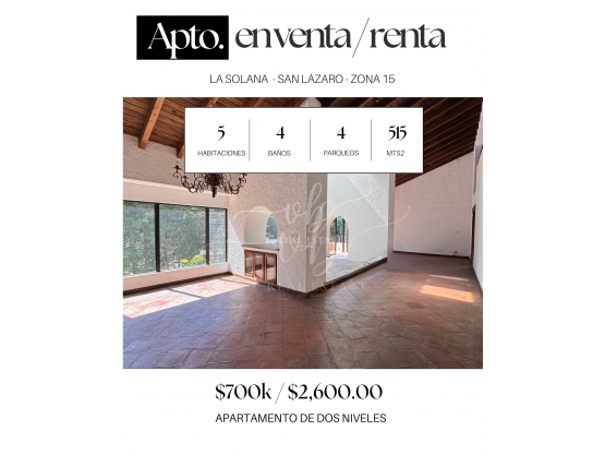 Apartamento de 2 niveles - La Solana - San Lazaro z15 (venta/renta)