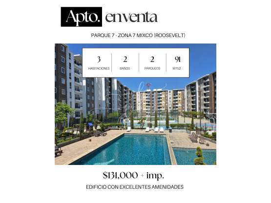Venta de apartamento en Edificio Parque 7!!