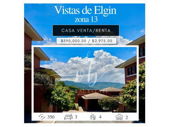 Amplia casa en alquiler y venta, en excelente ubicación en Vistas de Elgin zona 13 (final de las américas).