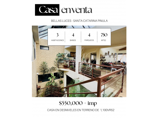 Amplia casa en venta en Condominio Bellas Luces - Santa Catarina Pinula